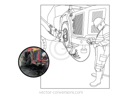Custom vector line drawing based on a photograph for instructions and training manual.